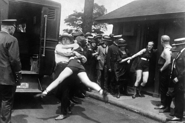 Так называемые танцевальные марафоны были популярным развлечением в 1920-х. Всё, что было нужно, — отплясывать, пока один из партнёров не потеряет сознание. Победителям доставались слава и, конечно, денежный приз, из-за которого они и стаптывали обувь. Судя по тому, что девушка потеряла сознание, пара проигрывает.