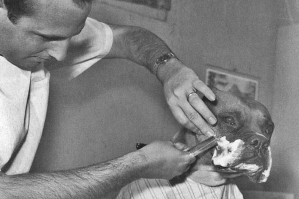 Кто сказал, что в салон красоты с собаками нельзя? Этот симпатяга по кличке Фриц, знаменитый боксёр, которого показывали по телевизору, пришёл побриться к парикмахеру в Калифорнии. Хочется верить, что это был рекламный трюк, и псу не сбрили усы по-настоящему.