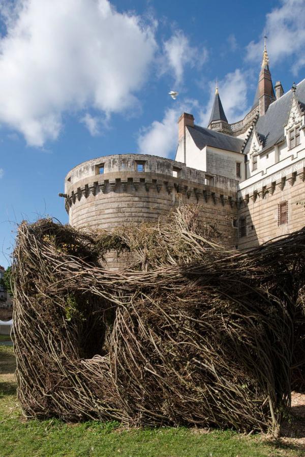 Наверное, в прошлой жизни скульптор был птицей. Причем обязательно той, которая вьет себе гнезда, - такие большие, добротные птичьи домики. Потому что в этой, реальной жизни, он посвятил себя созданию достаточно необычных инсталляций. Из сотен тысяч тонких палочек и прутиков Патрик вьет масштабные скульптуры, настоящие украшения парков, садов, скверов.