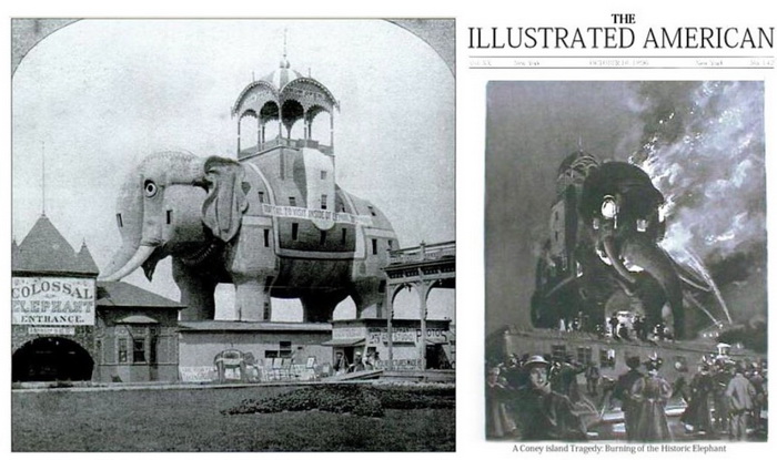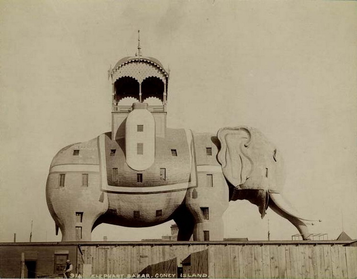 Примечательно, что идея разместить клуб внутри громадного слона была позаимствована у известного скульптора Джеймса Лафферти, который построил немало достопримечательностей на Кони-Айленде. Среди них был и пятиэтажный отель в форме слона, снискавший славу публичного дома. Отель был возведен в 1885 году и работал до 1896 года, пока там не случился пожар.