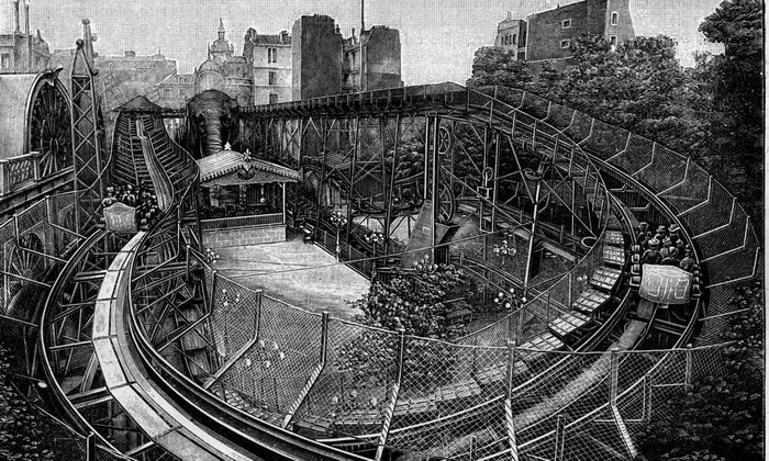Слон был не просто скульптурой: внутри него располагался зал для отдыха. Винтовая лестница, располагавшаяся в “ноге” животного вела наверх, к “брюху”, и там-то как раз располагался зал, на сцене которого выступали артисты и знаменитые танцовщицы канкана.