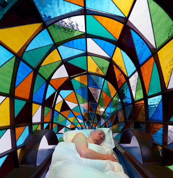 Дизайнер Доминик Уилкокс видит именно таким одно из направлений автомобилестроения в будущем: автомобиль-беспилотник, предназначенный исключительно для комфортного сна в движении.