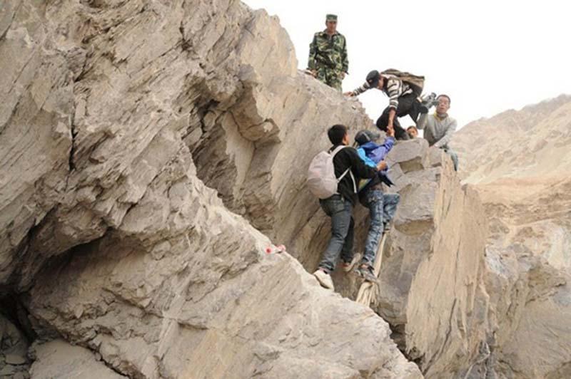21. Эта дорога находится в Синьцзян-Уйгурском автономном районе. Дети должны пересекать эти утесы раз в семестр.