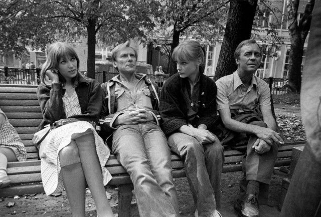 1984. Актеры Елена Майорова, Сергей Шакуров, Марина Шиманская и Олег Борисов в перерыве съемок фильма «Парад планет» режиссера Вадима Абдрашитова