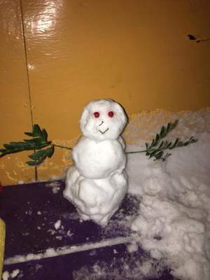 Возле одного из домов на лавке появился снеговой интернет-мем Ждун. Также в городе появился снежный зайчик, который карабкается на дерево.