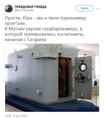 Соцсети бурно высмеяли кражу барокамеры Гагарина. ФОТО