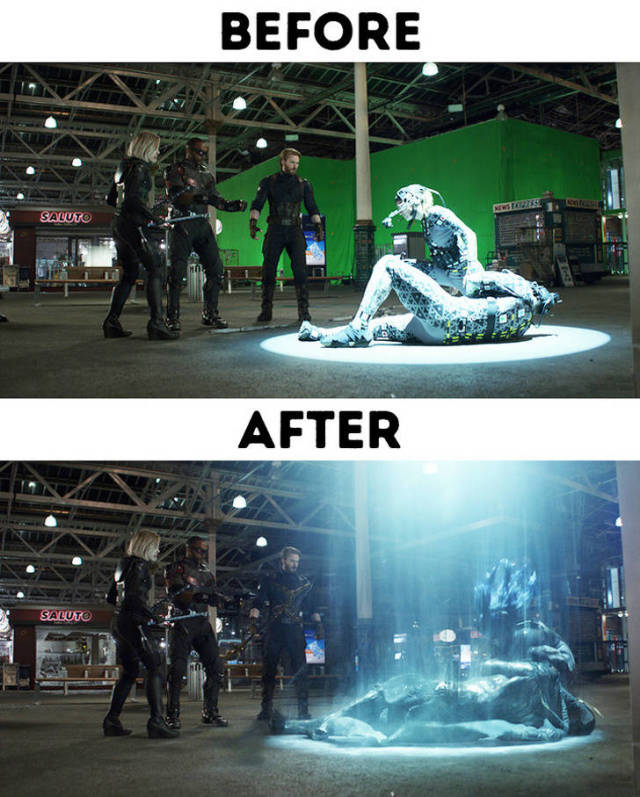 Практически ни один современный фильм не обходится без компьютерной графики, которая воспроизводит множество различных спецэффектов. Именно поэтому кадры со съемочной площадки могут значительно отличаться от готового фильма, ведь многие эффекты потом дорисовываются на компьютере.