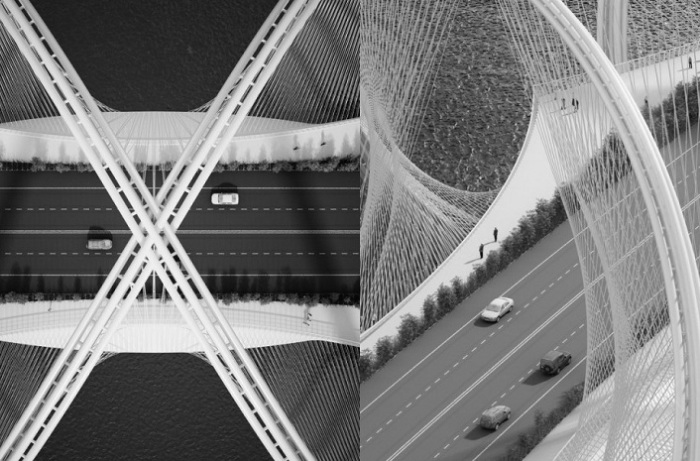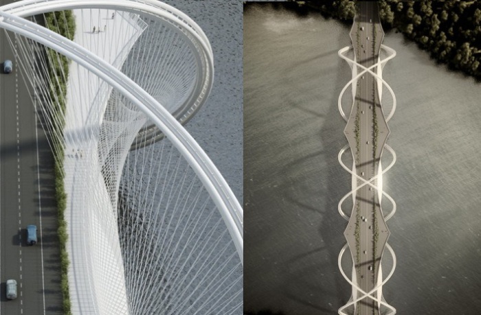 Опорные тросы в форме арок были разработаны и спроектированы британской инженерной фирмой ARUP. Их участие в проекте позволит мосту приобрести задуманный эстетический вид, не теряя при этом необходимой прочности.