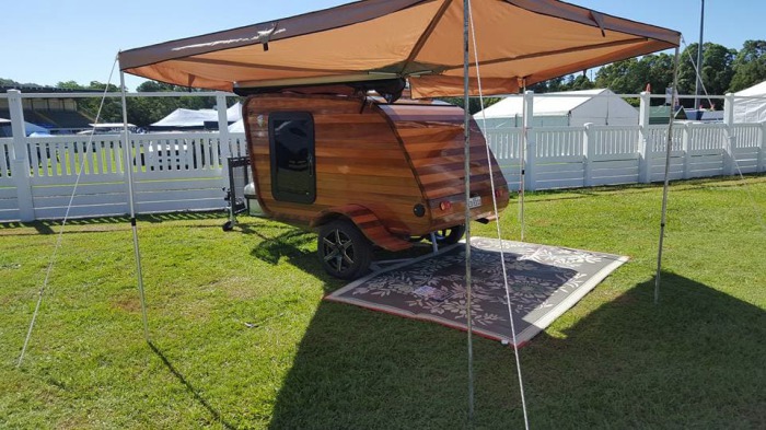 Cedar Teardrop на самом деле не совсем каплевидный, он скорее является чем-то вроде смеси параллелограмма и традиционной капли. При этом он построен из панелей красного кедра.