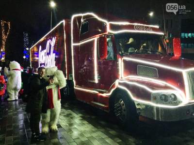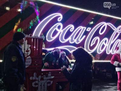 Жители и гости Днепра имели возможность получить бутылку сладкого напитка с новогодним оформлением за тематическую фотографию в социальных сетях или просто за хорошее настроение. Также можно было сфотографироваться с дедом Морозом, эльфами и медведями, но самое главное - посидеть внутри известного новогоднего грузовика. Именно эта возможность пользовалось популярностью среди детей.
