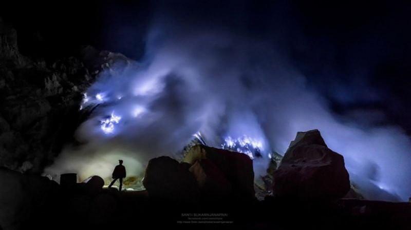 Из-за постоянно возгорающейся серы вулкан приобретает совершенно фантастический вид.