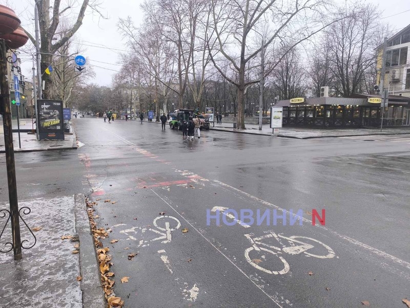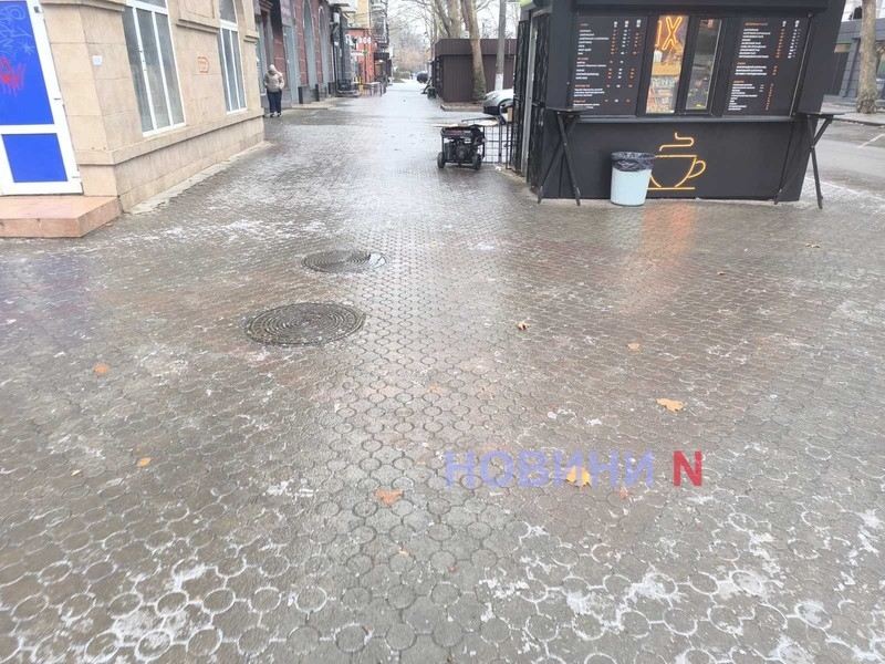 К концу второго дня сильнейшего гололеда в Николаеве начали посыпать главную пешеходную улицу (видео)