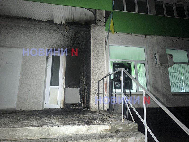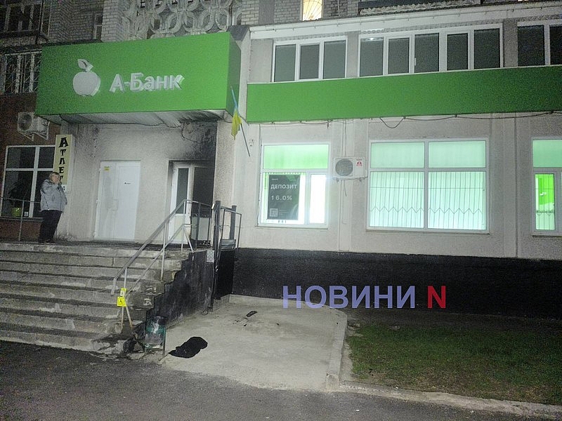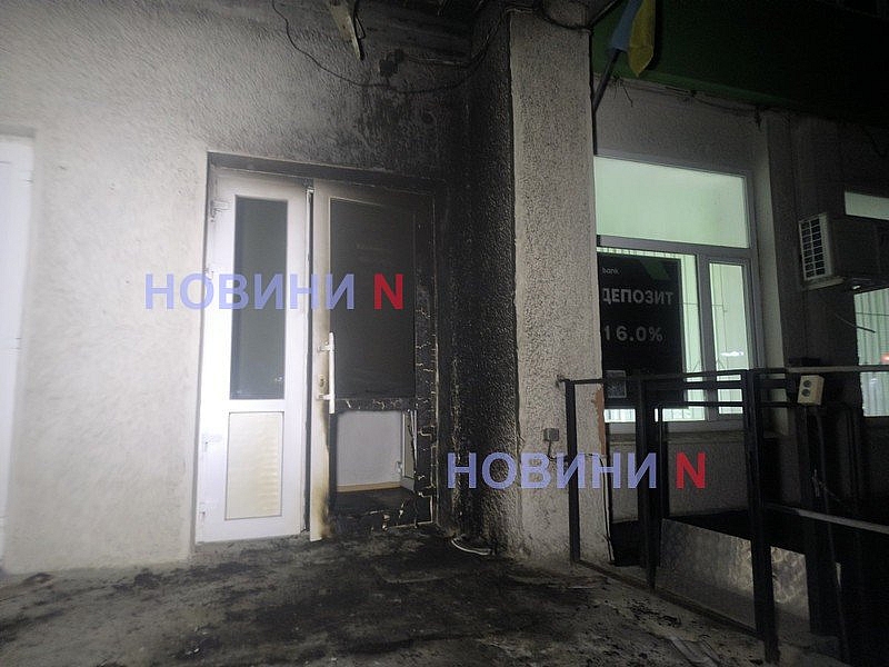 Около полуночи неизвестные подожгли банк в центре Николаева (видео)