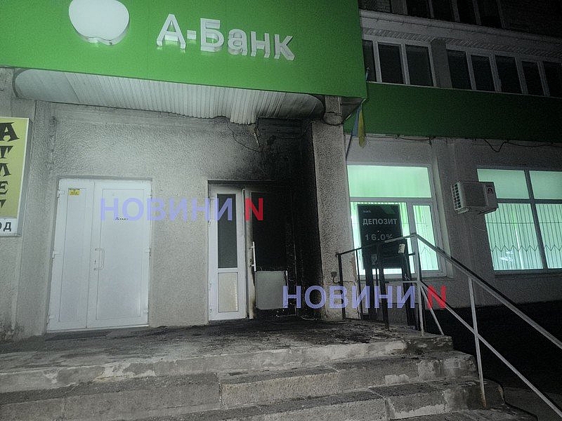 Около полуночи в субботу, 11 апреля, неизвестные подожгли дверь в помещение А-Банка, расположенное на пересечении проспекта Центрального и улицы Садовой.